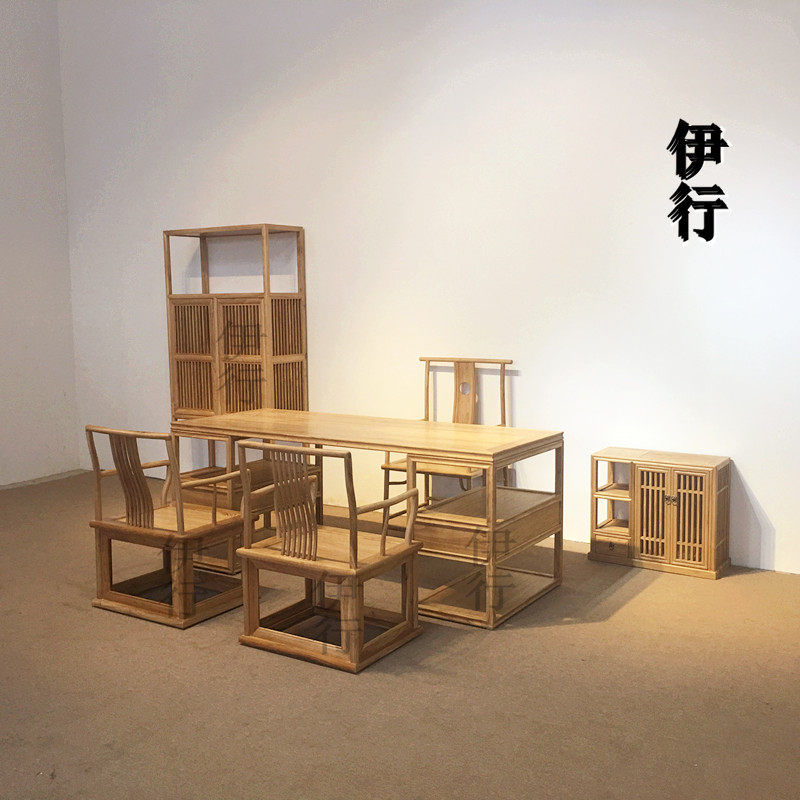 New Chinese solid wood desk Zen study writing desk painting case old elm desk black walnut calligraphy desk