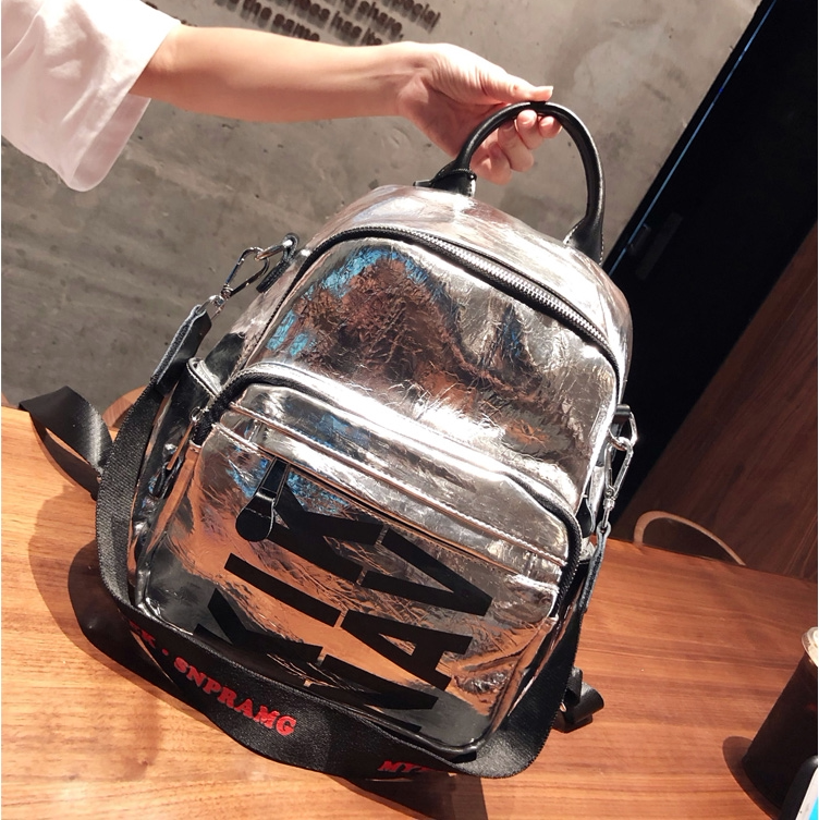 Hong Kong tide brand genuine leather silver backpack female Korean version fashion all-match cowhide soft leather dual-purpose backpack travel bag