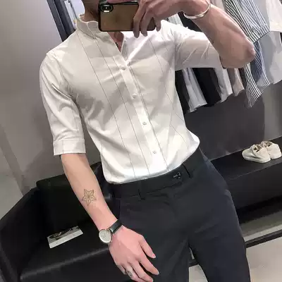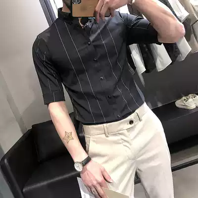 Summer striped five-point sleeve shirt men's Korean slim-fit men's short-sleeved men's trend half-sleeved casual three-point sleeve shirt