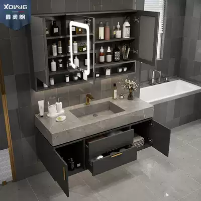 Rock plate one-body basin bathroom cabinet combination Nordic light luxury smart sink wash face Basin basin cabinet dressing room wash table