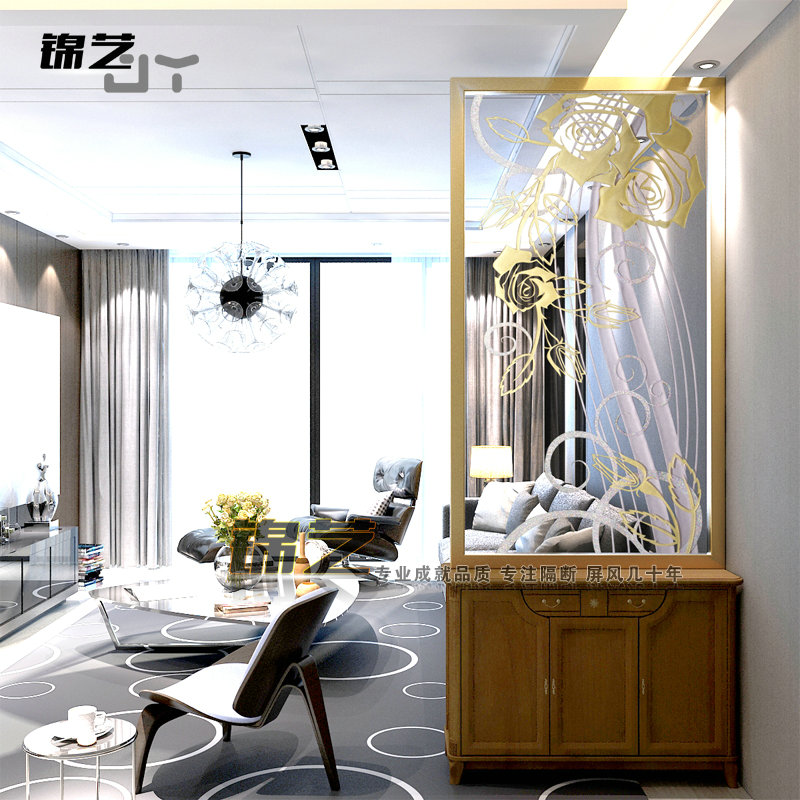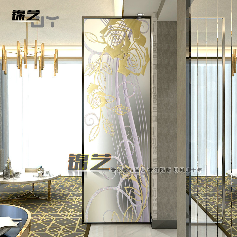Tempered decorative transparent glass art carved screen partition custom-made American country porch living room balcony door core