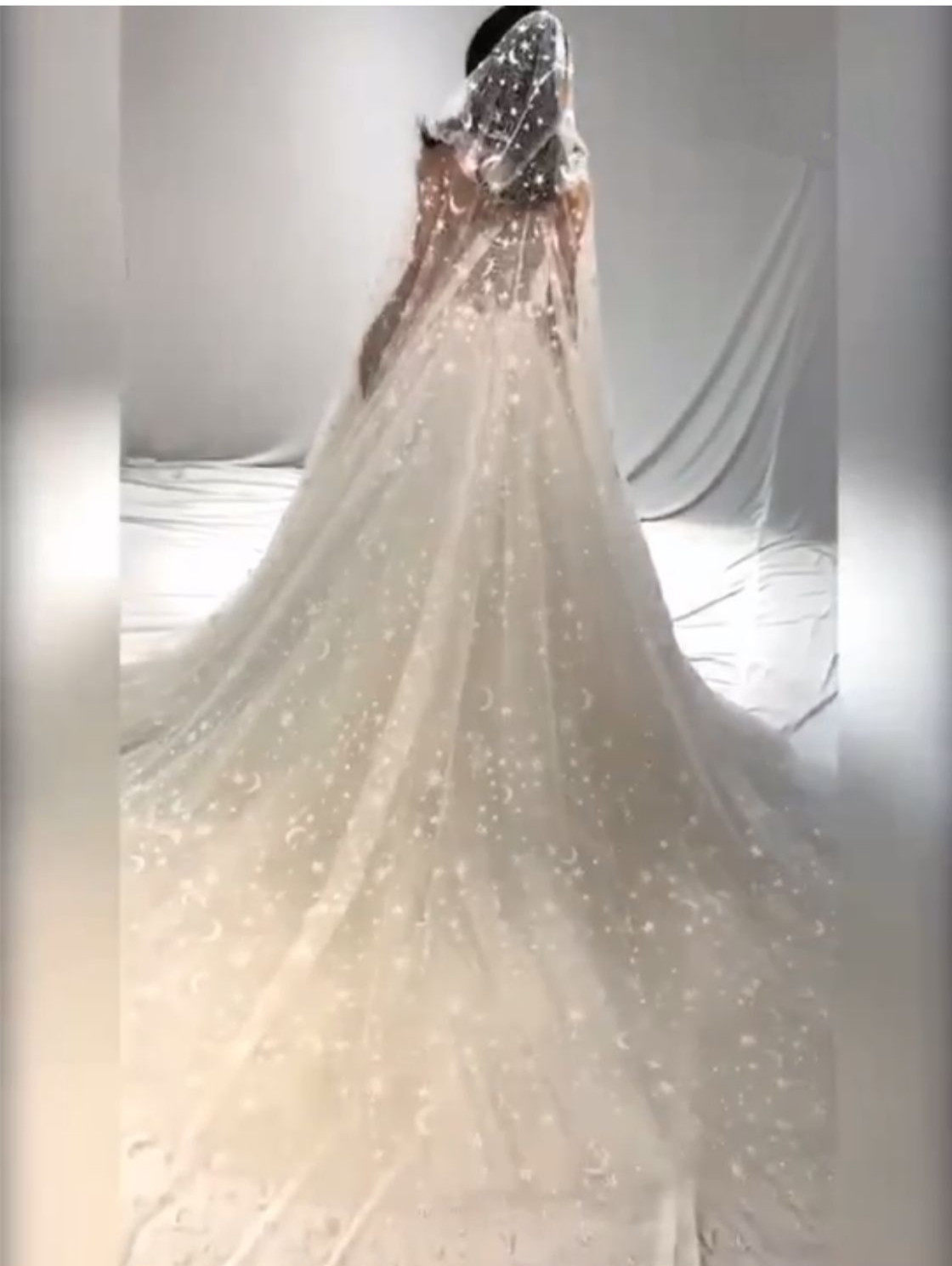 Shake Soundnet Red Bridal Bridal Wedding Shawl New Star Moon Cape Twinkle Glittering Head Yarn Trailing yarn without wedding dress