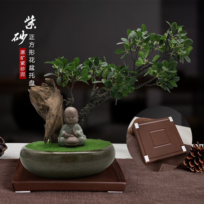 Purple sand tray water tray square pot holder water tray bonsai potted anti-leakage tray flower pot base gardening