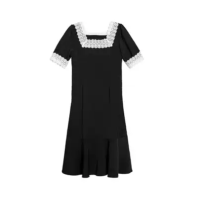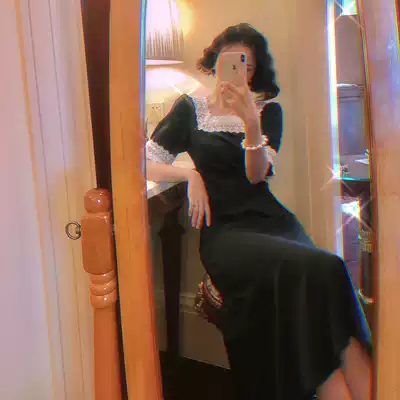 Lace square collar dress wine afternoon 2021 female summer new French vintage solid color chiffon bubble sleeve long skirt