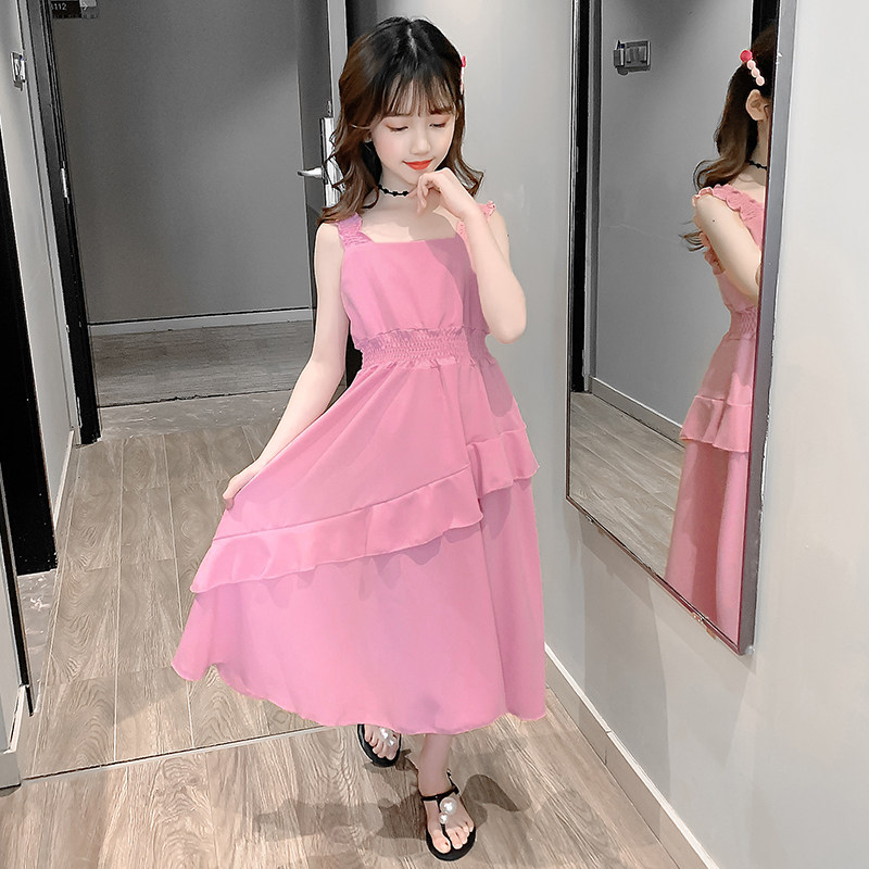 Girls dress summer 2021 new net red Ocean school children's summer super fairy child knee-length chiffon dress