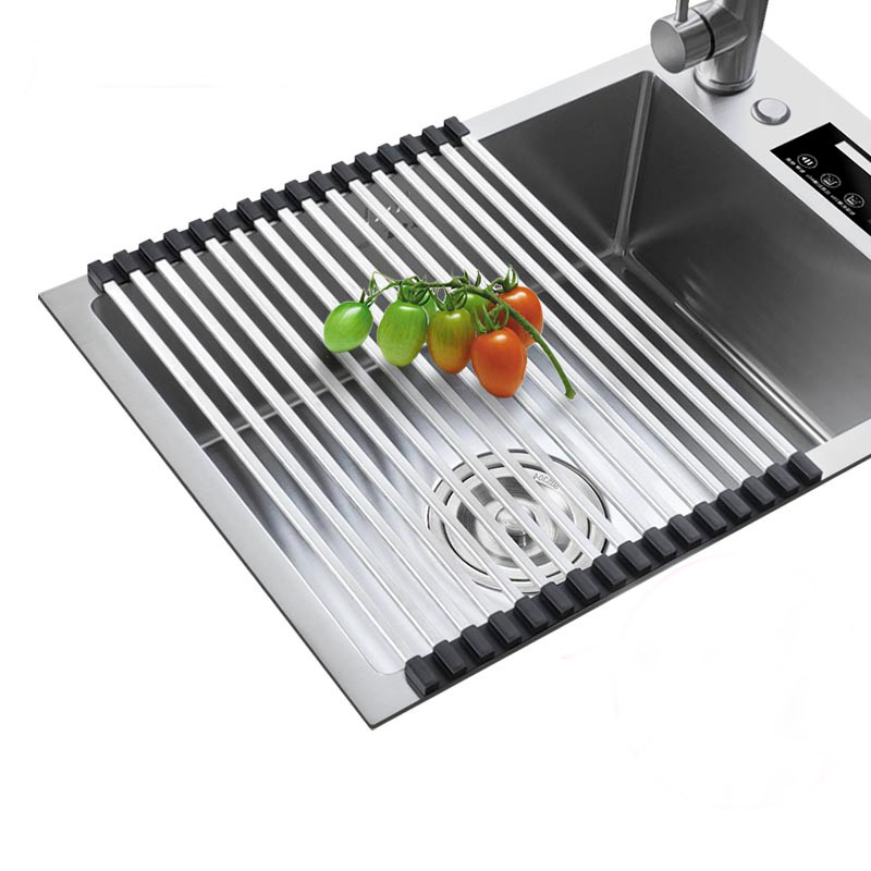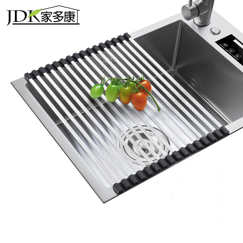 Jiaduokang folding kitchen sink drain basket 304 stainless steel filter pool drain rack wash basin black roller shutter