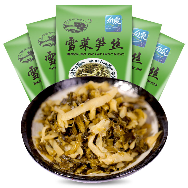 Fish Springs Vegetable Snow Vegetable Shoots 80g * 5 pickles Bamboo Shoots Open To Taste Little Snowy Vegetables Small Packed Fried Vegetables Children's Next Meal