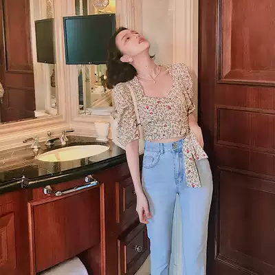 Wine afternoon 2021 female summer new French retro high waist thin cotton jeans Hong Kong wind straight tube ankle-length pants