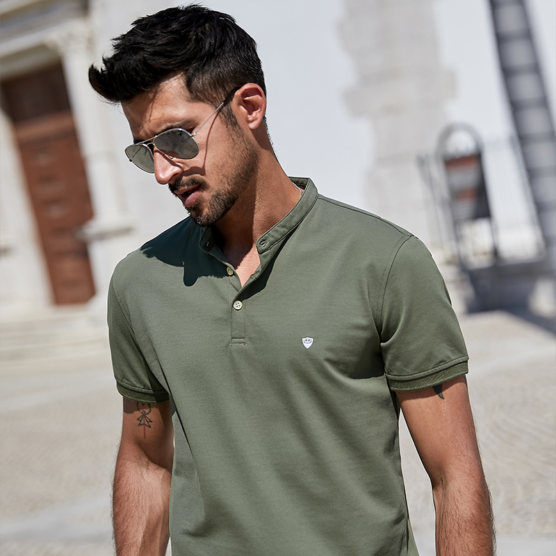 Kuegou Men Led Short Sleeved Polo Shirt Male Summer Casual Simple Pure Embroidery Trend T-shirt 3383
