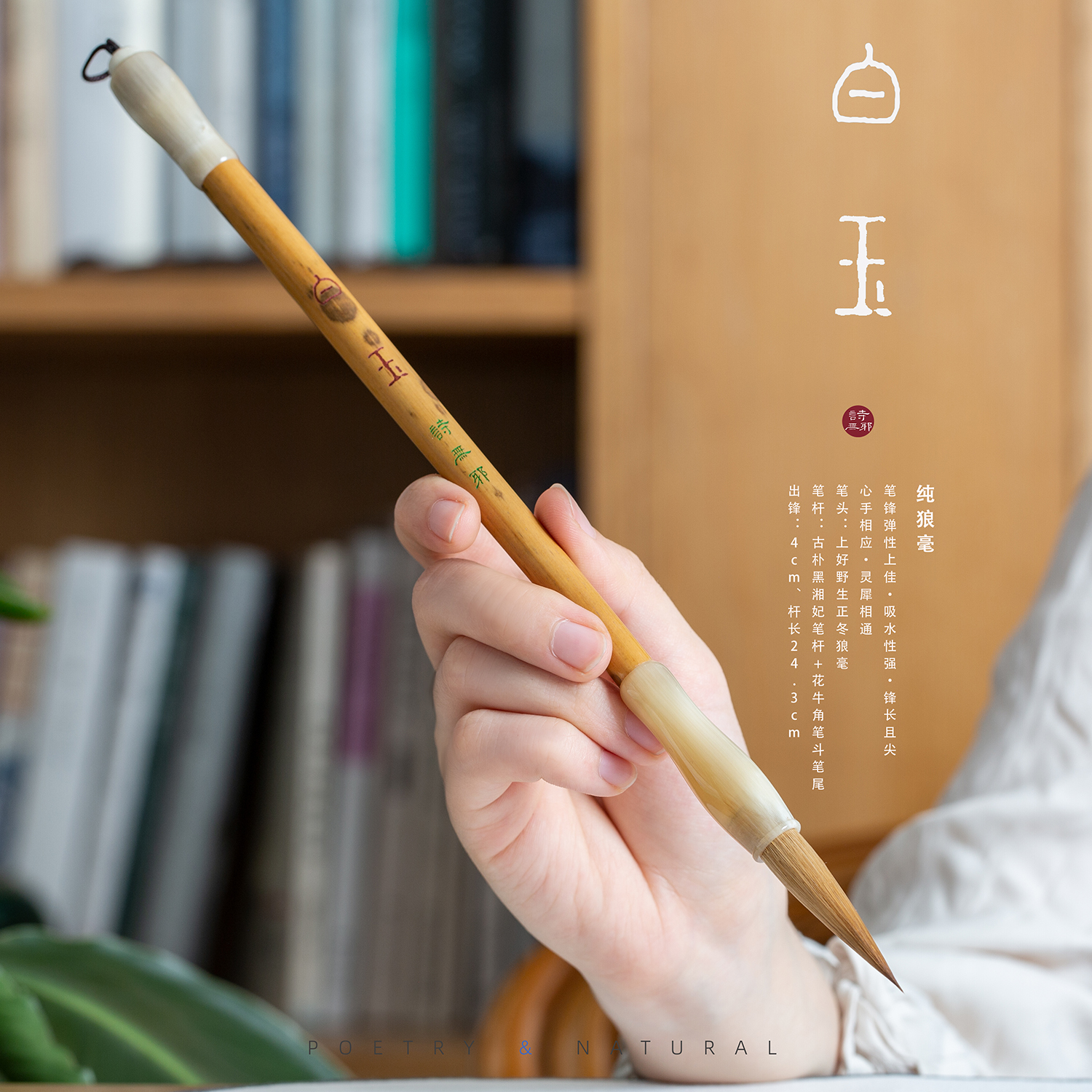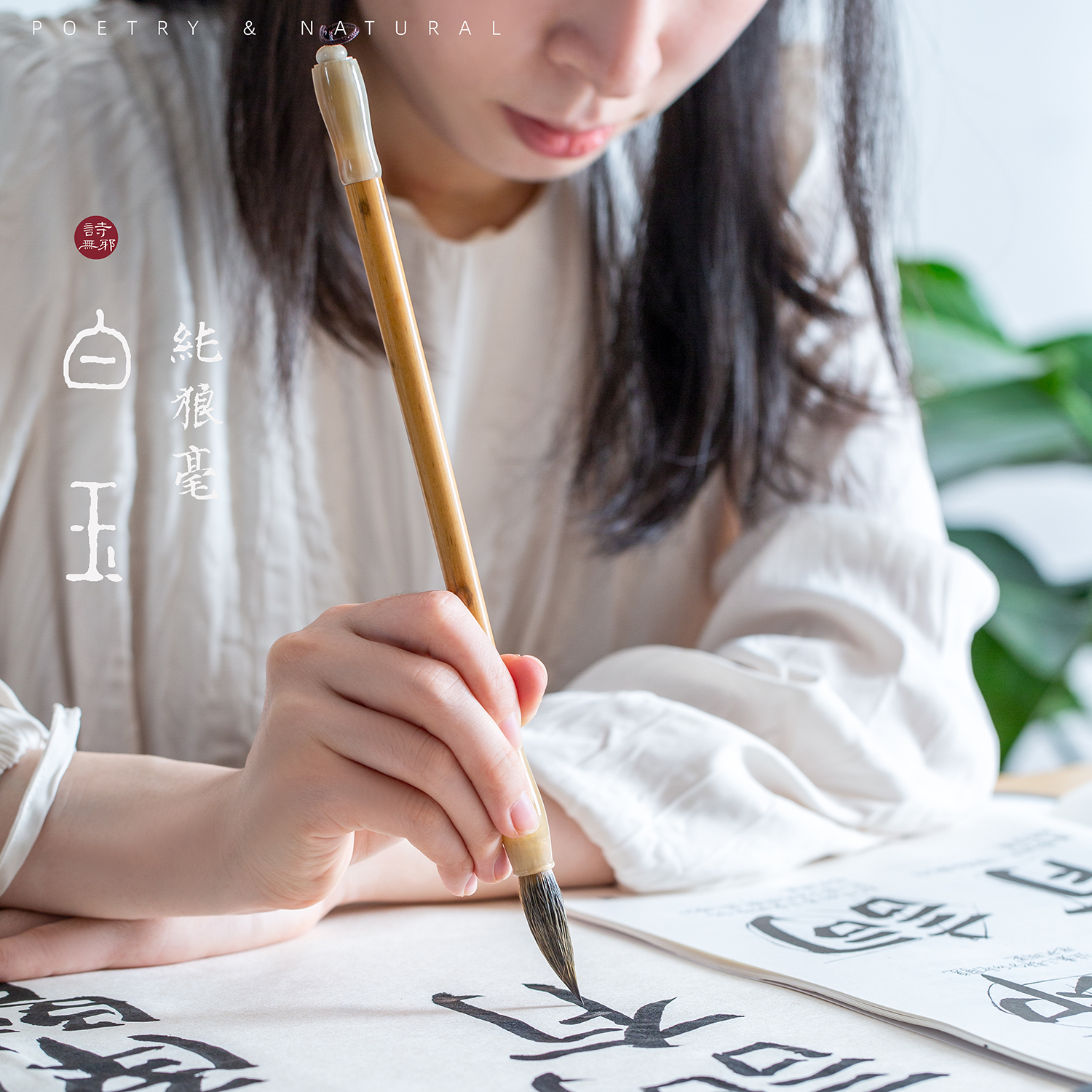 (White Jade) High-end Pure Wolverine Mmid North End Brush Block Letters Book Book Seal Book Seal Book Straw Book Landscape Calligraphy Professional Class