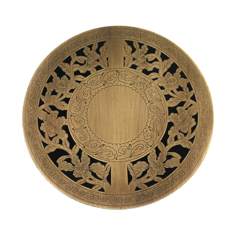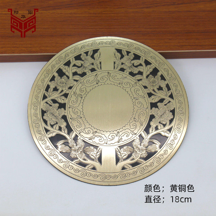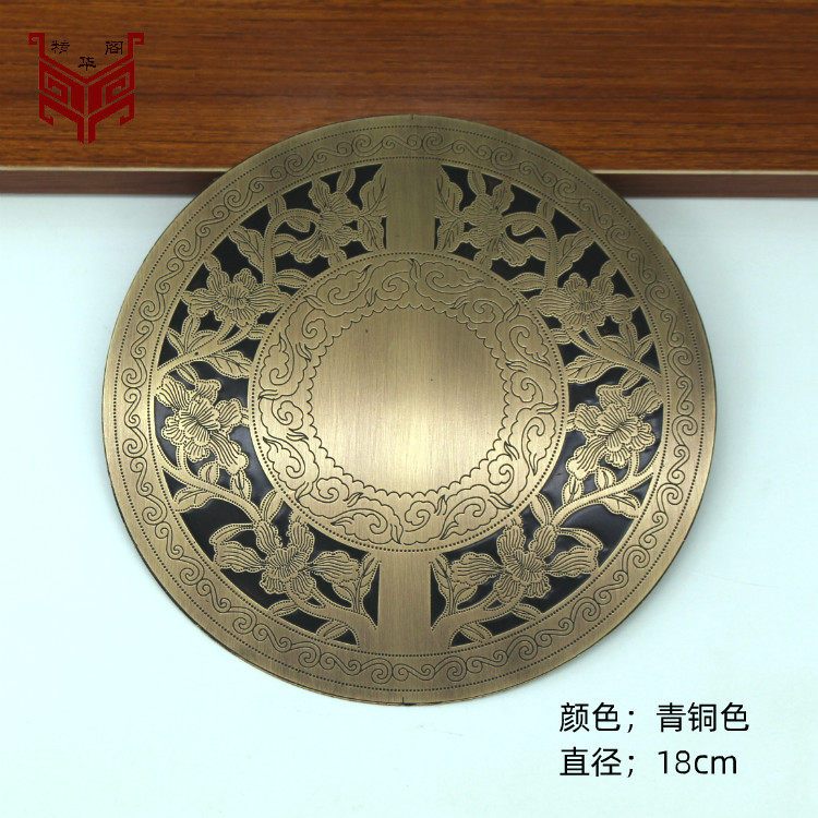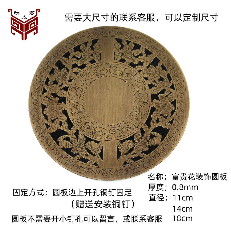 Chinese pure copper round appliqué flower blossom rich door patch camphor wood box gift box copper accessories box decorative round piece