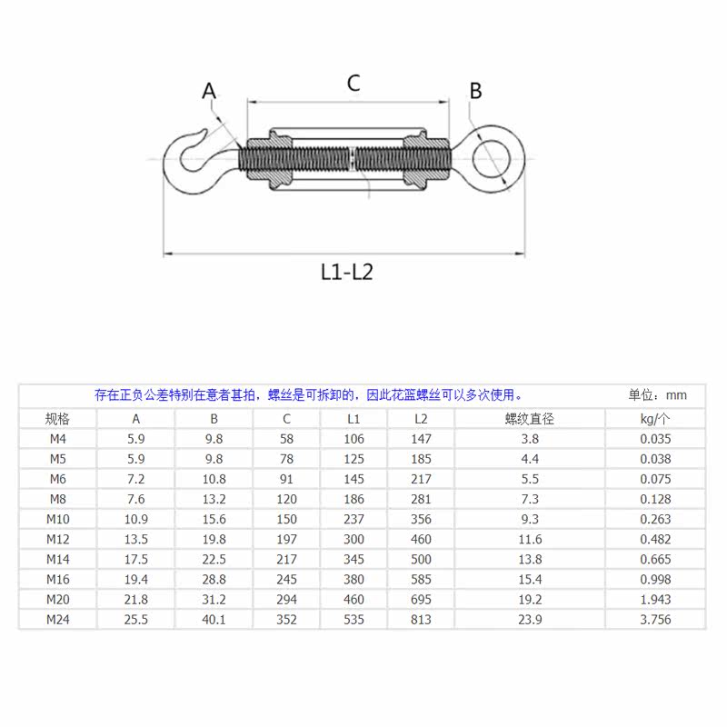 304 stainless steel flower basket screw steel wire rope tensioning tight wire puller OC open body flower Lambolt M4-M16