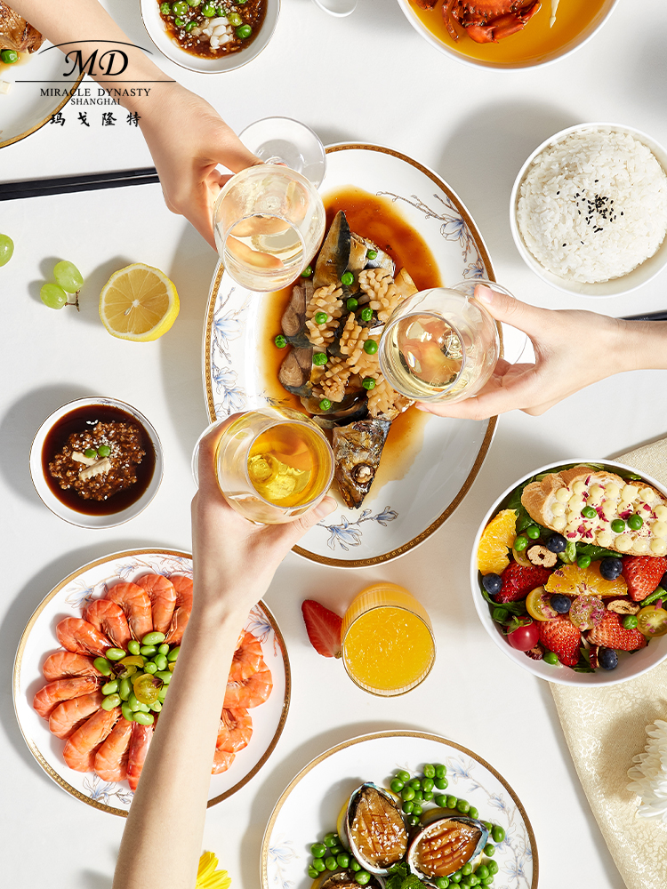 Margolonte bone china tableware Jinbo enamel color gold luxury Chinese household flat plate soup bowl noodle bowl rice bowl