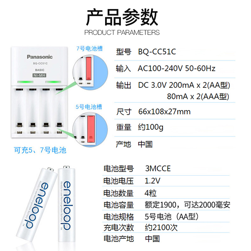 Panasonic Philharmonic Large-capacity No. 5 No. 5 No. 7 Rechargeable Battery 4 Capsules Sanyo eneloop Love Wife Toy Digital Camera Flash with CC51 Charger CC55 Set