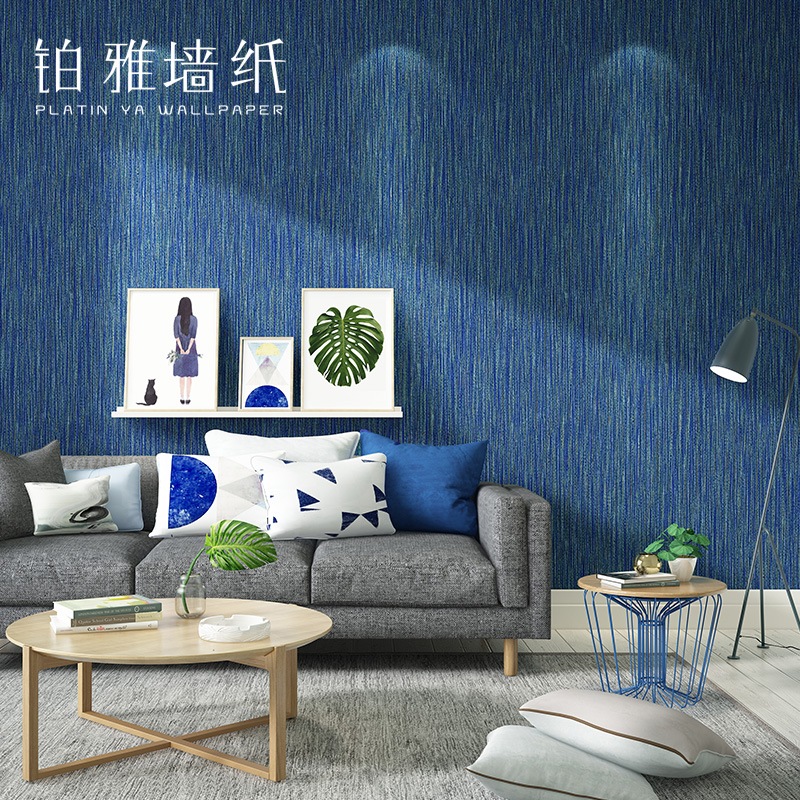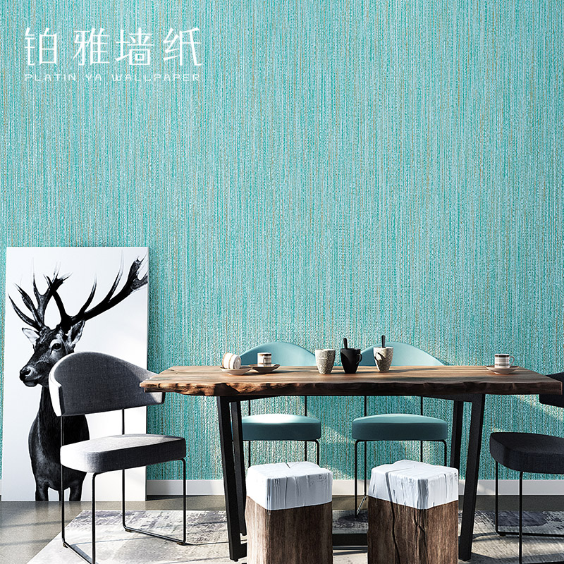 Modern minimalist pure colour plain blue ink green linen wallpaper living room bedroom background wall paper peacock green