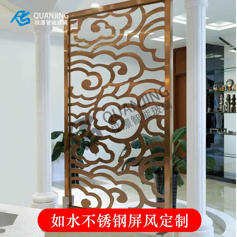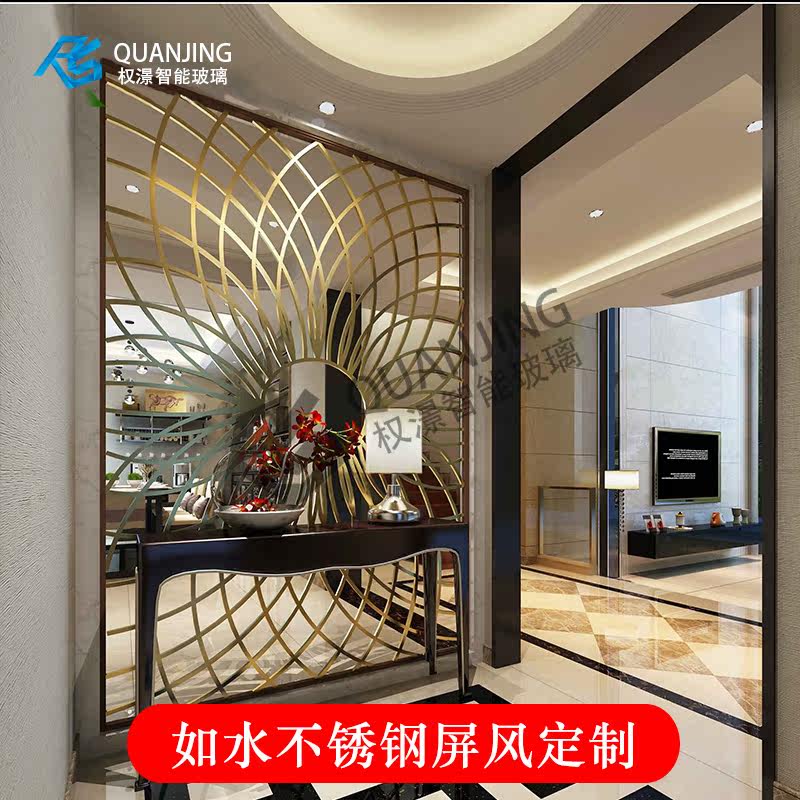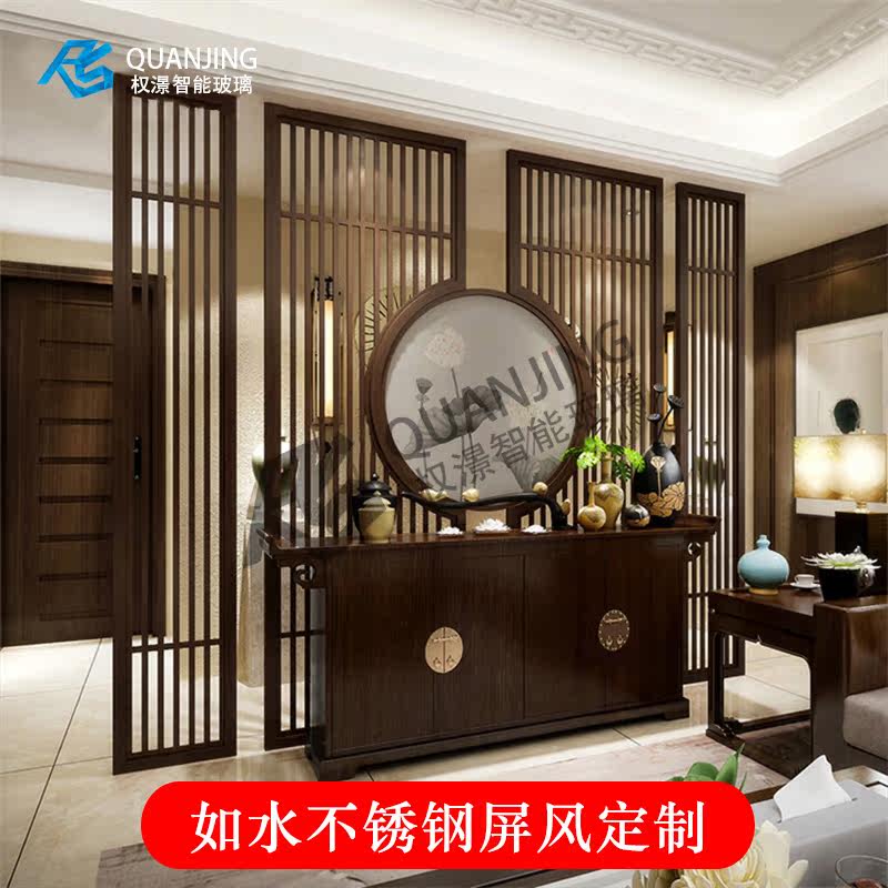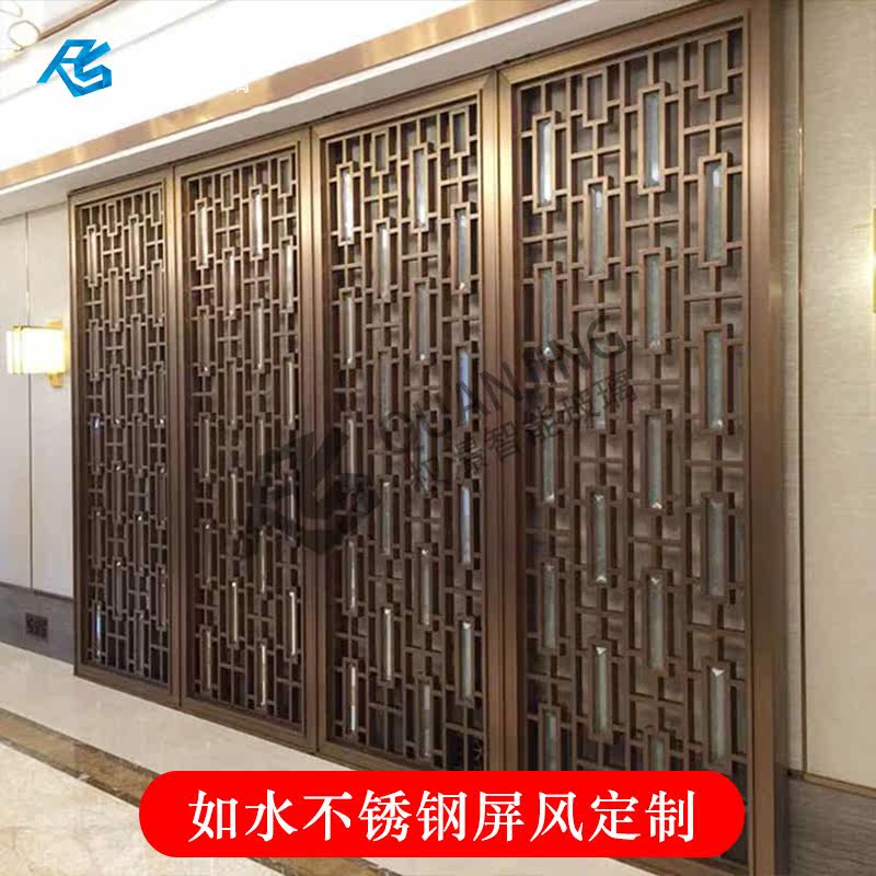 Stainless steel screen partition Titanium alloy living room entrance Modern simple Chinese style light luxury dining room decorative screen customization