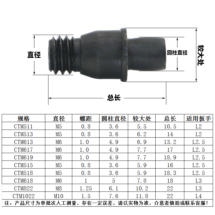 CTM510CTM513CTM515CTM613CTM617 use L2 5 wrench CTM617 use L3 0 wrench CTM618CT