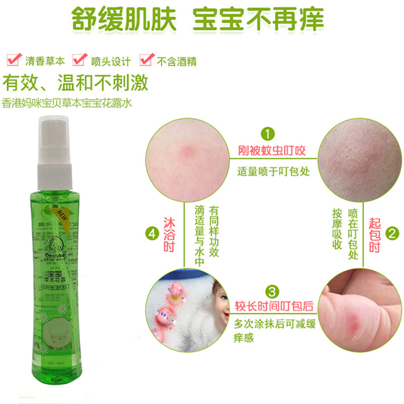Hong Kong Mommy Baby Herbal Flowers Dew water spray Mosquito Repellent for freshly-born summer bath cool gold water to dispel the heat