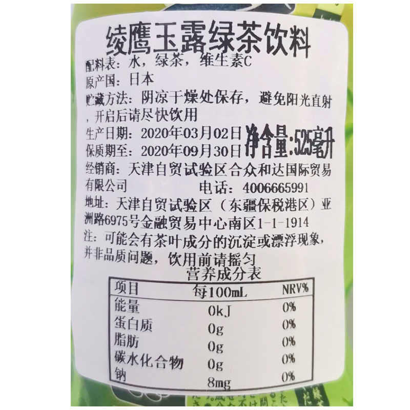 Ayo Eagle jade dew green tea drink 525ml * 4 bottles