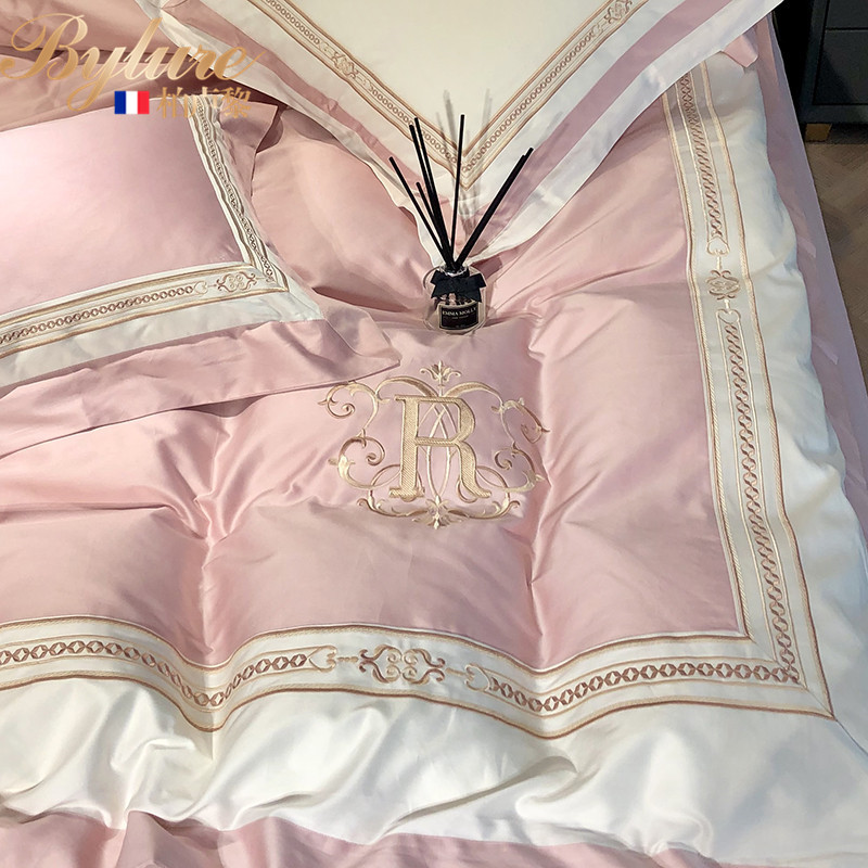 Bylure100 long staple cotton summer cotton cotton cotton simple embroidered quilt sheets ins solid color bedding