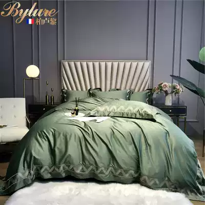 Bylure European-style four-piece cotton net red high-end pure cotton plush cotton simple embroidery satin summer bedding