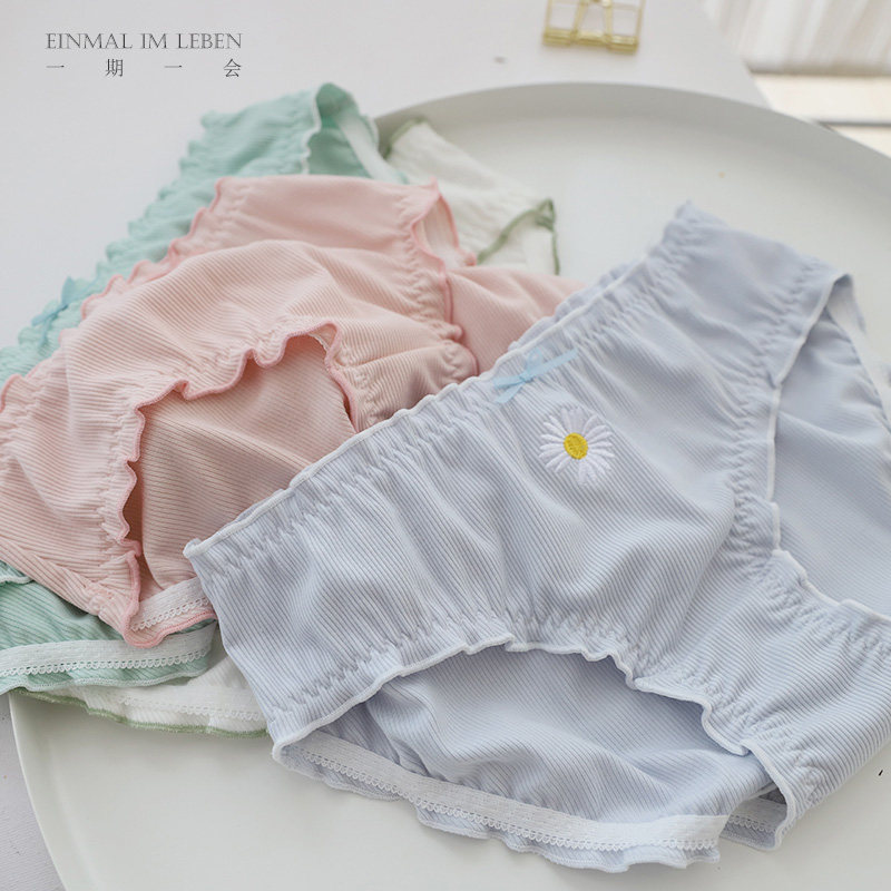 Summer Japanese embroidery cotton women's underwear girls sweet and fresh ruffled student briefs