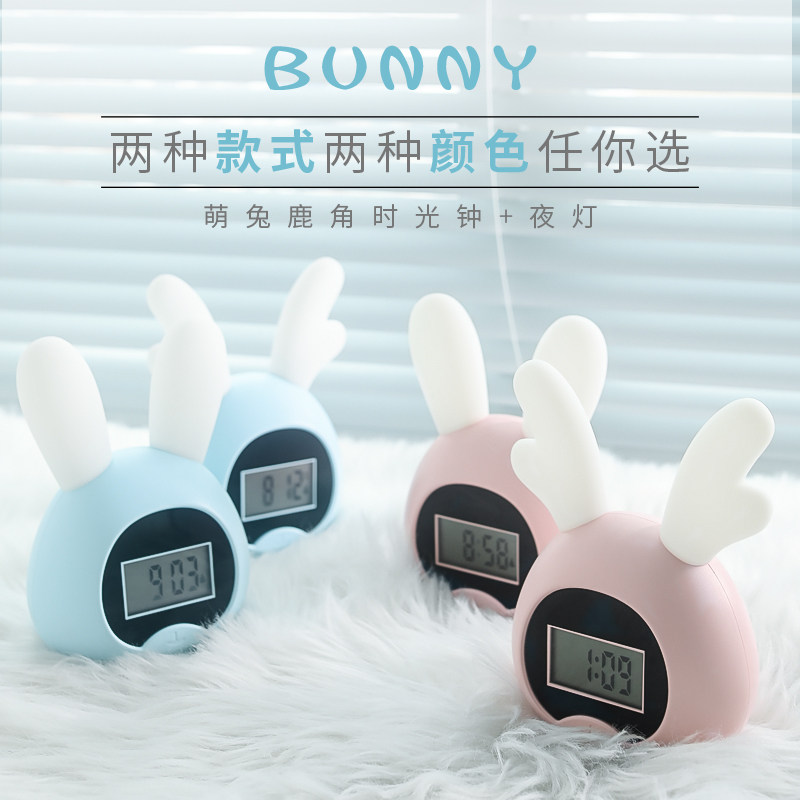 (Macaron Blue) Antlers♥The clock function♥With USB charging cable (macaron blue) cute rabbit model♥The clock function♥With USB charging cable (Girl powder) cute rabbit model♥The clock function♥