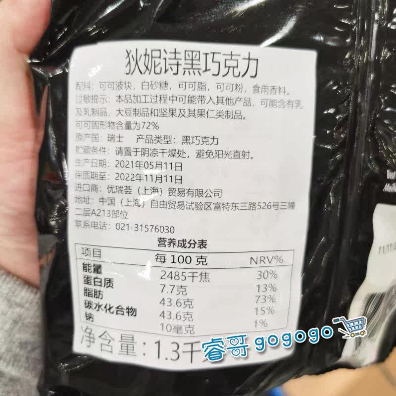 Shanghai costco Dianne Poetry Switzerland imports milk hazelnut chocolate 72% black chocolate products