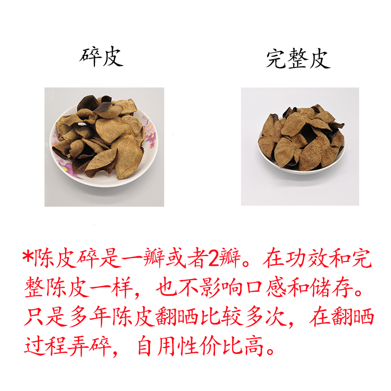 (500 gr) 10 years (complete peel) 1 catty (500 gr) 10 years (broken leather) 1 catty (250 gr) 10 years (complete peel) Half a catty (250 gr) 10 years (broken peel)