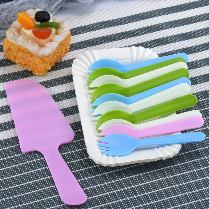 Cake Knife Fork Suit Birthday Knife Fork Dish Combination Pan Fork Set Cake Cutlery Disposable Paper Tray Suit-Taobao