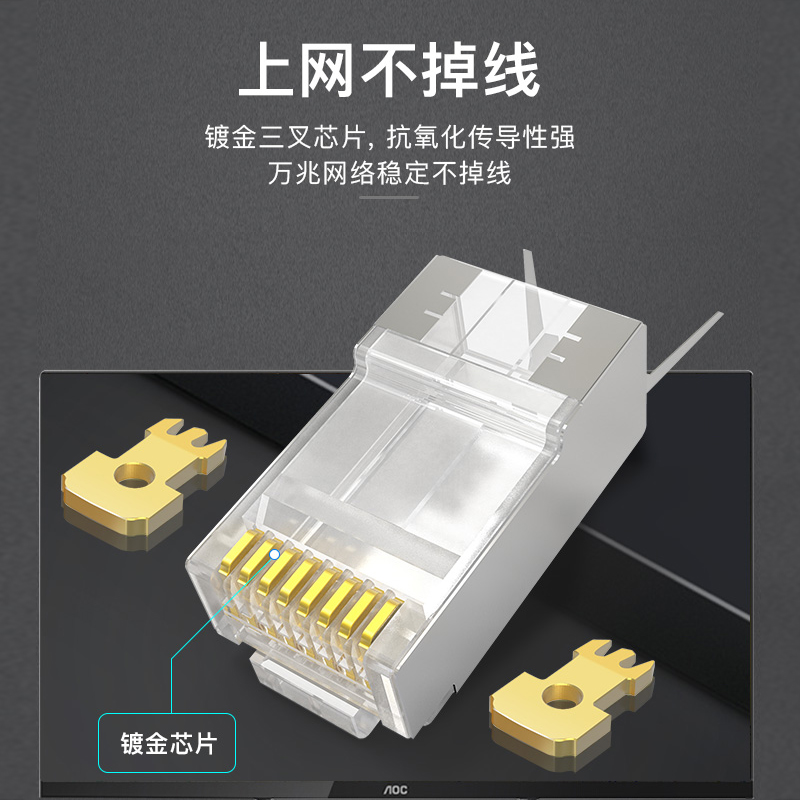 Autumn leaf original net route crystal head ultra five types of non-shielding six types of shielding ultra seven type eight-type free pressure RJ45 joint