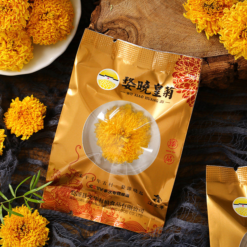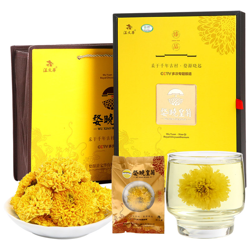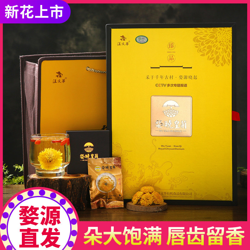 Chrysanthemum tea Jiangxi Wuyuan organic imperial chrysanthemum big chrysanthemum tea Xiaoqi yellow chrysanthemum gift box with a cup of tea Hydrangea King