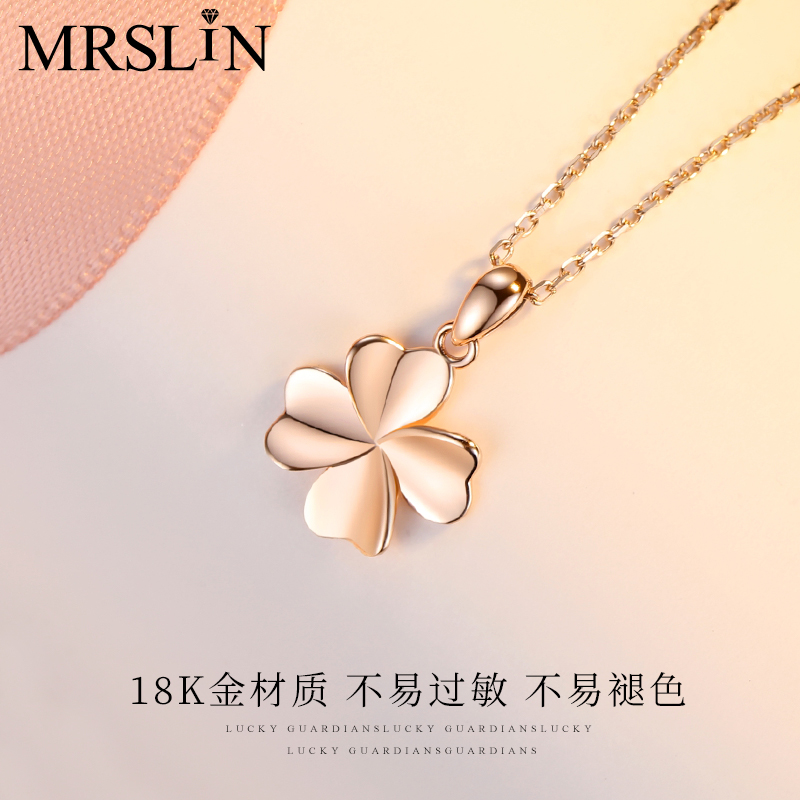 18k gold four-leaf straw necklace female rose color gold 2021 new light extravagant and small crowd Valentine's Day gift to girlfriend