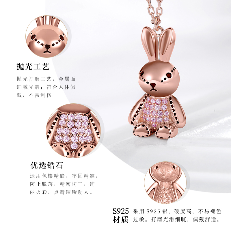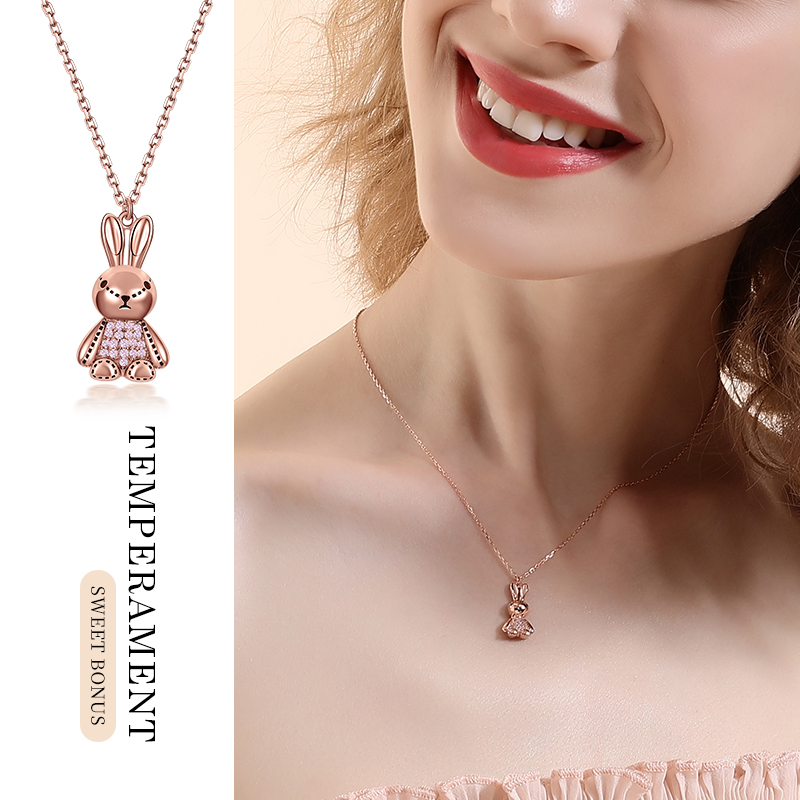 Cute Rabbit Necklace Woman Pure Silver Lock Bone Chain Light Extravagant And Small Crowd Design Sense Superior Jade Rabbit shaped pendant 7 New Year's gift
