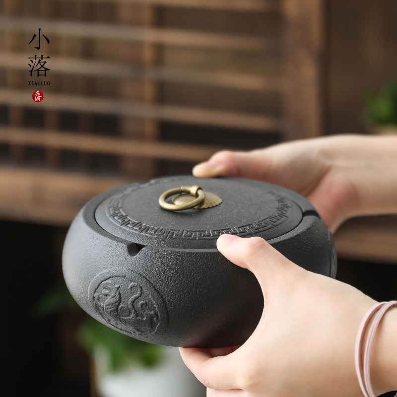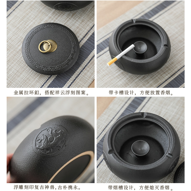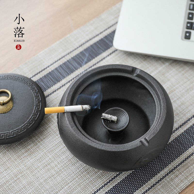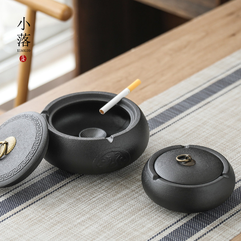 Cigarette Ash Trays Ceramic Home Living Room With Lid Windproof Anti-Fly Ash Creative Personality Trend Office with a large number of smoke cylinders