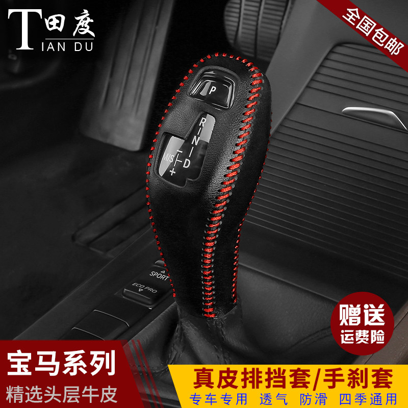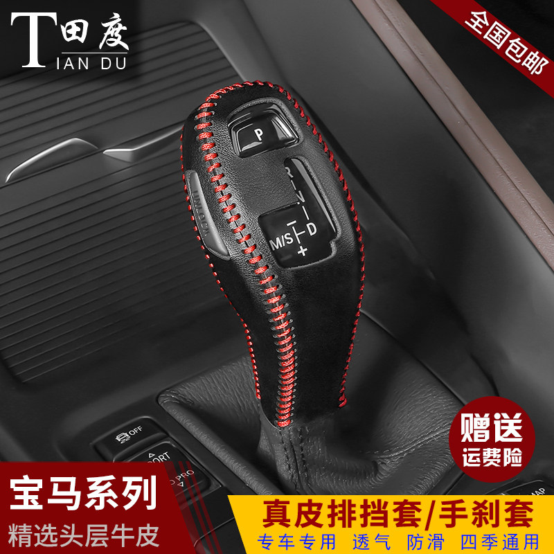 20-Latest section BMWX1 electronic gear shift handle cover black leather red line 20-latest in BMWX1 electronic gear shift handle set of black leather black line 16-19