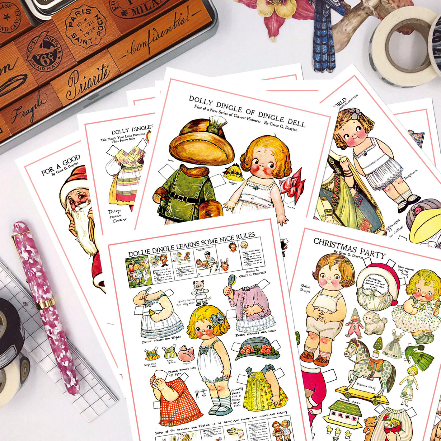 Retro material junkjournal Showa Doll Tomato Soup for Diy Hand Paste