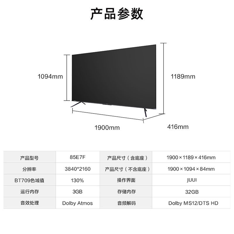 Hisense 85E7F 85 inch 4K HD smart flat panel AI full screen large screen TV 100