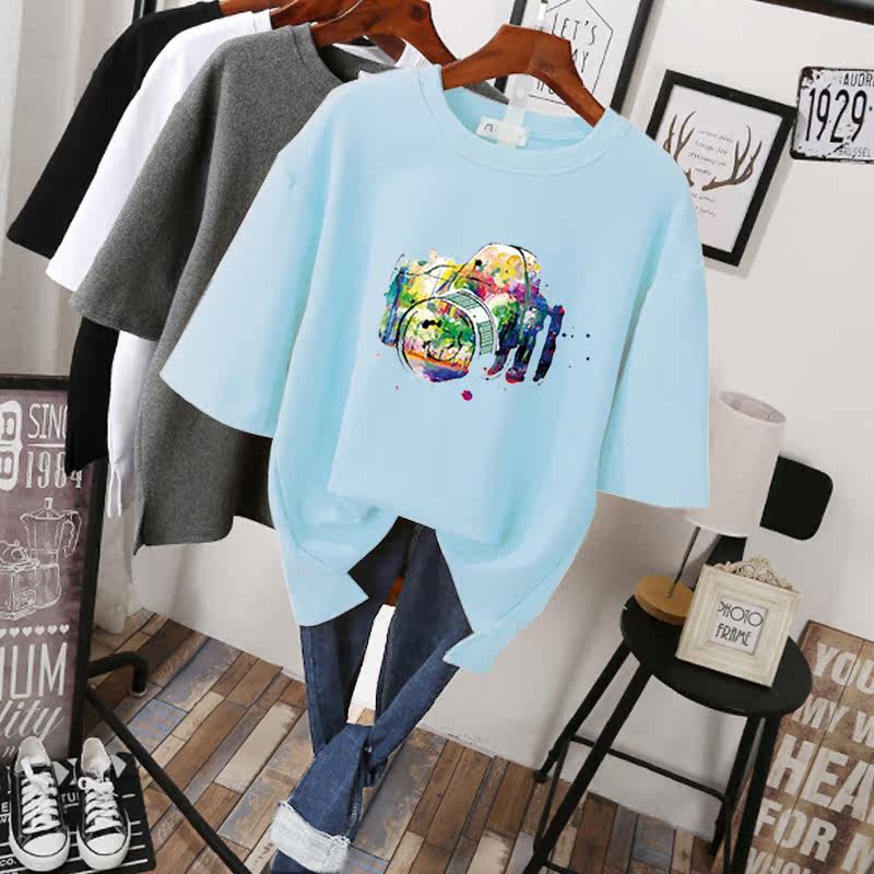 2023 summer large version Korean loose t-shirt women's short sleeve fat plus size women's clothing laid-back half sleeve female fat mmT