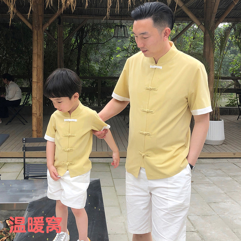 Chinese style mother and daughter skirt father and son Tang suit top father and son shorts