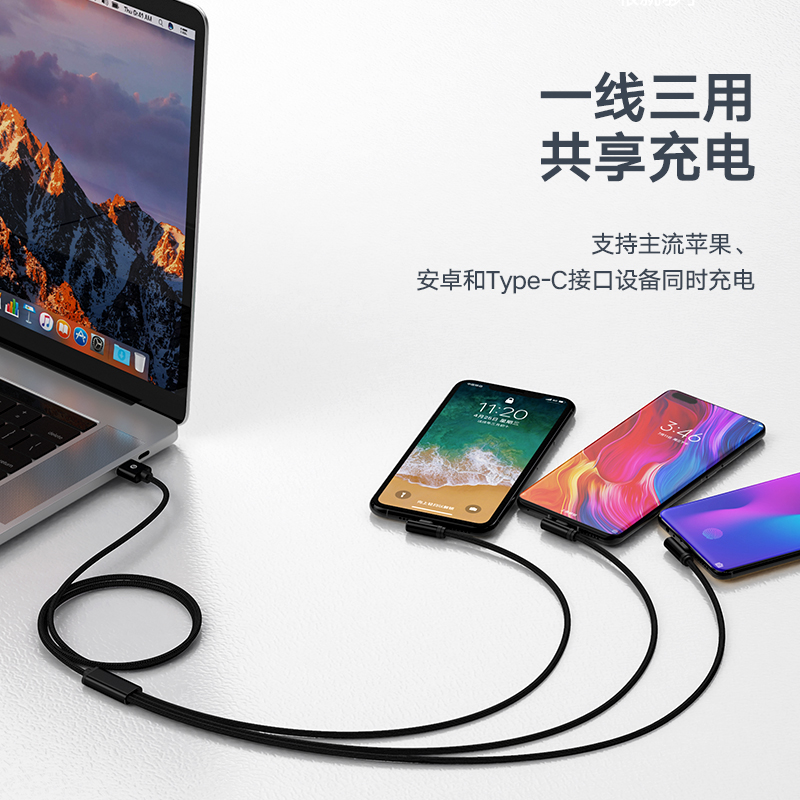 biaze data line three-in-one charge line one drag three 2 m 3 joints Quick-charging elbow mobile phone bulls apply Apple phone Huawei three-headed two-meter right angle Android 2m lengthened sum 3 all-in-one-Taoba