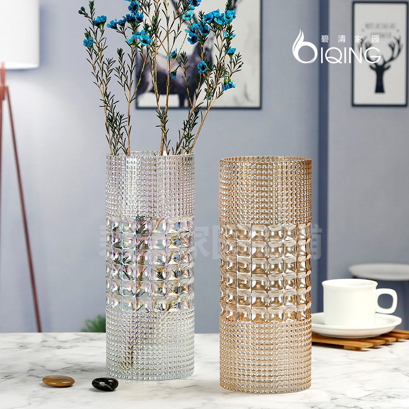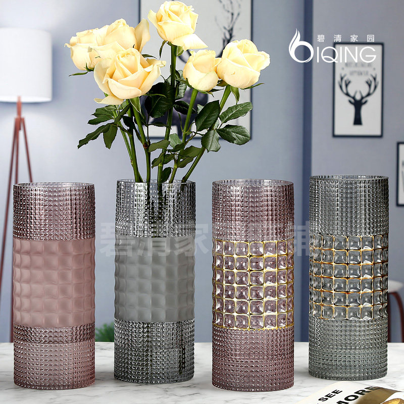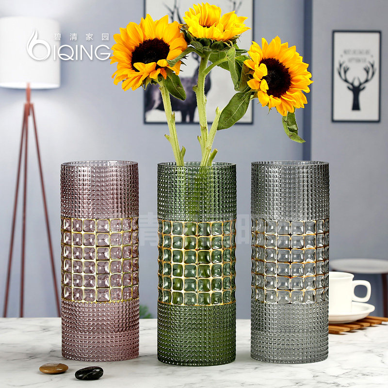 Light luxury colorful net red glass vase lily sunflower platycodon flowers dried flowers straight tube gold desktop color