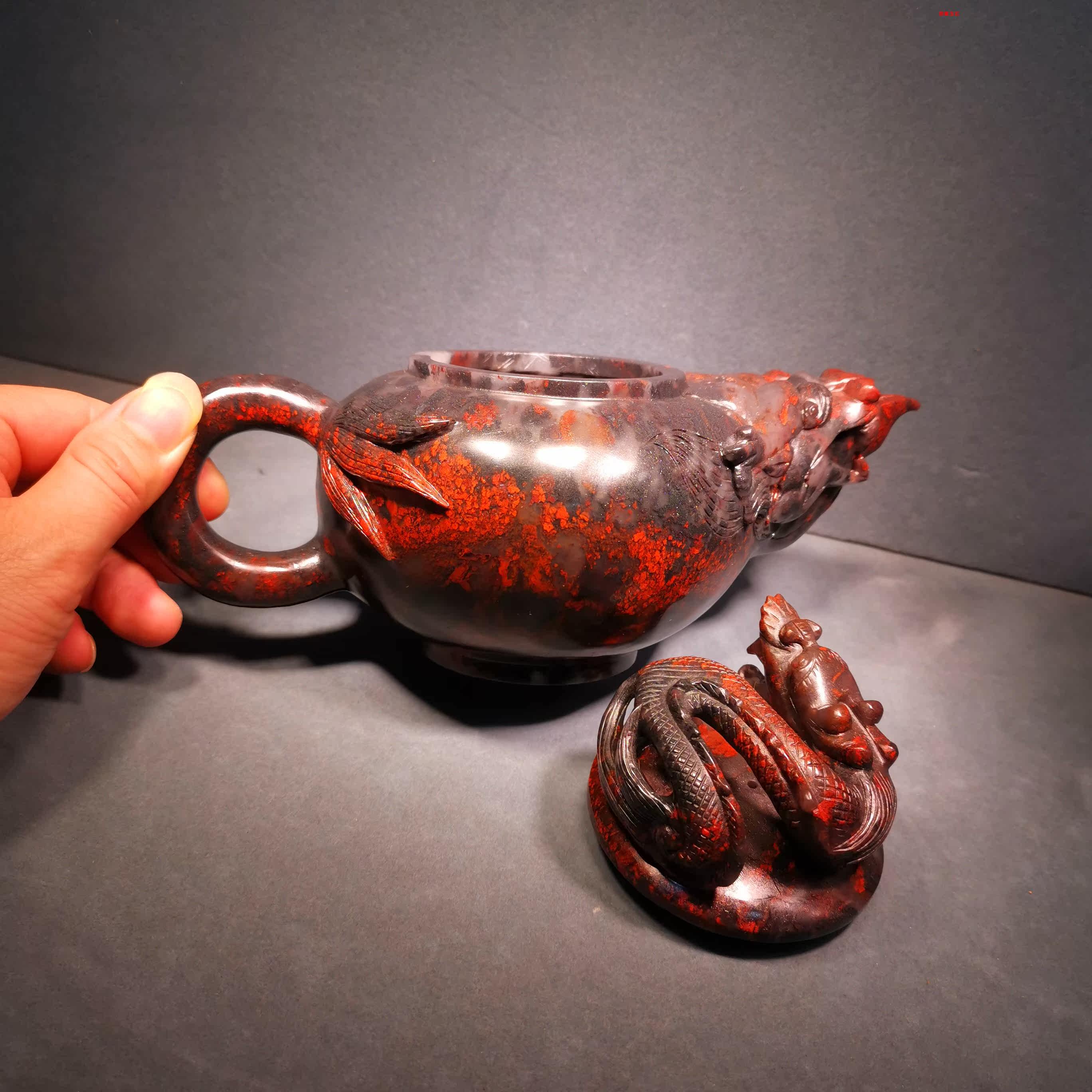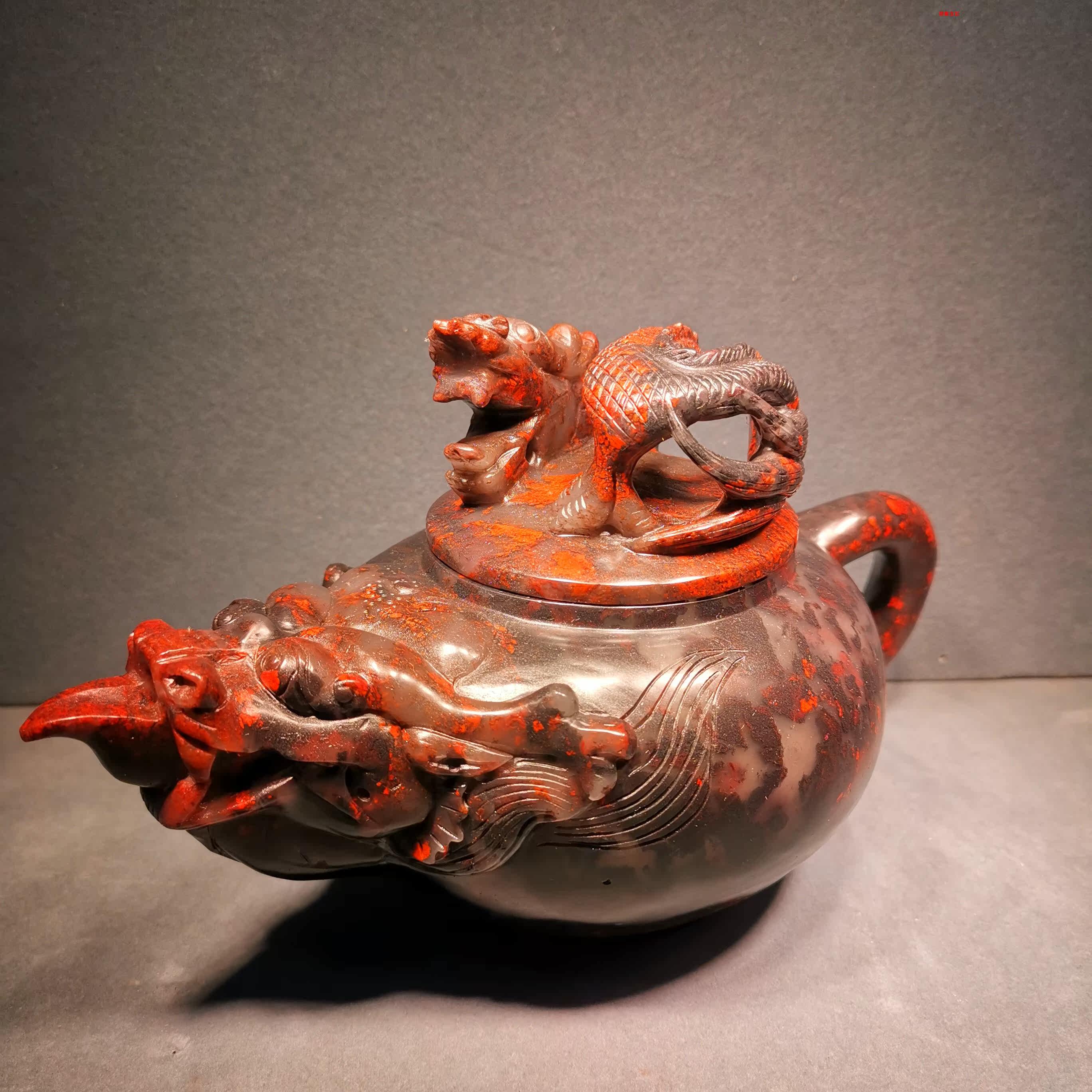 Guilin's new horn freezes jade dragon winning stonework imitation ancient carved dragon Feng presents a set of auspicious teapots