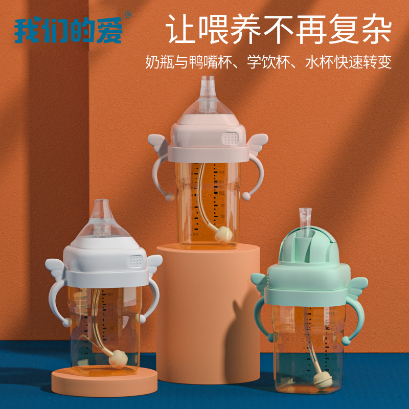 Adapting hegen accessories baby bottle water cup head straw gravity ball handle hegen duckbill nipple