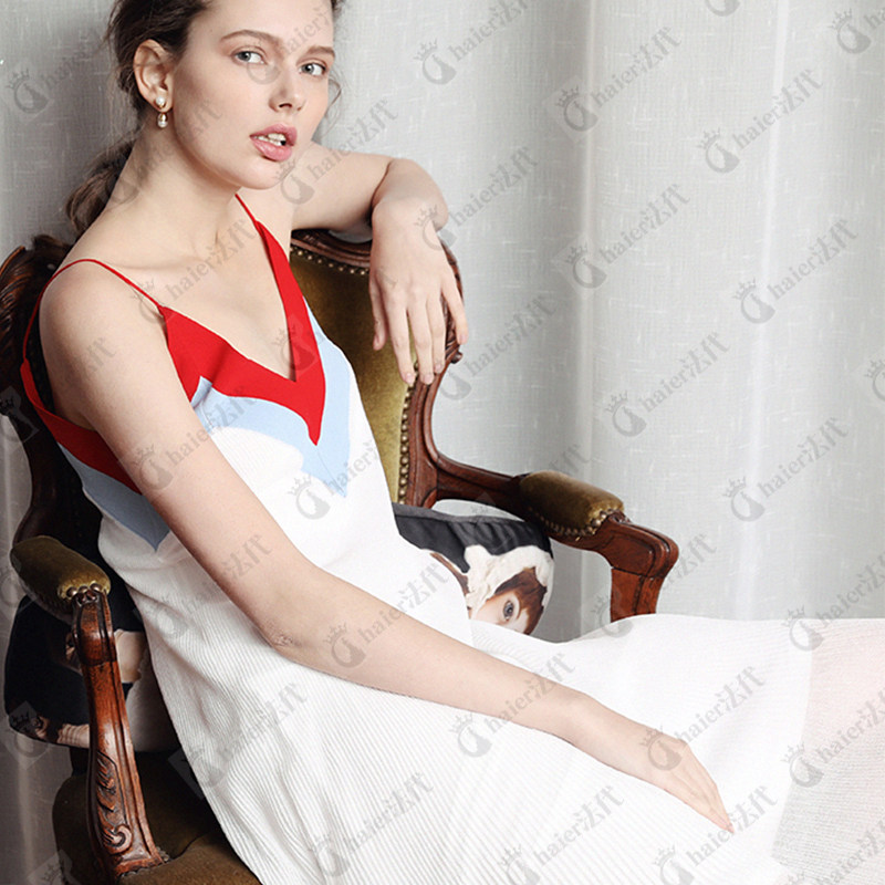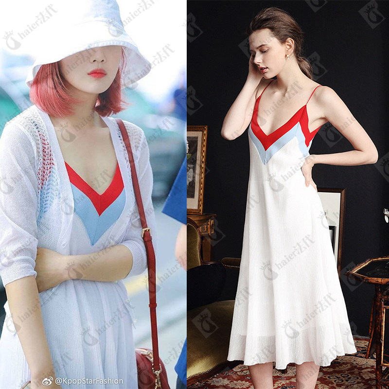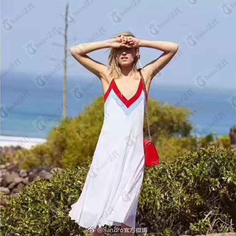 (haier French generation) Sandro 2020 spring and summer suspenders temperament sexy V-neck color matching mid-length dress