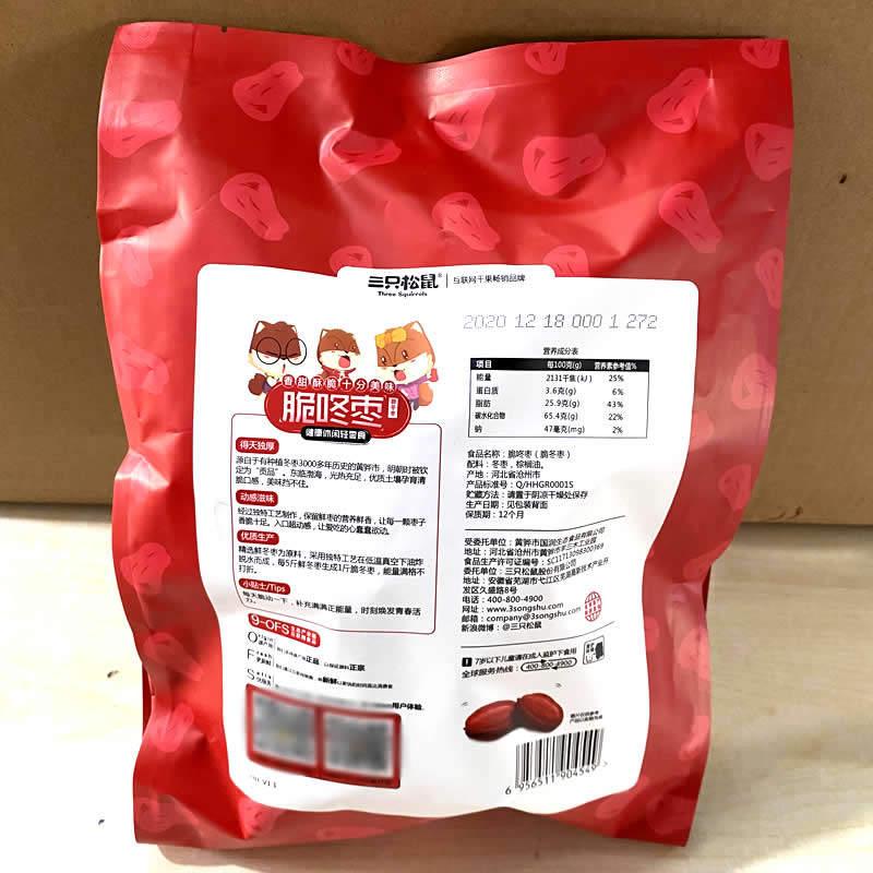 Three squirrels crunchy date 180g crisp winter date snack with dried fruit and dried fruit ready-to-eat free red date red and crisp