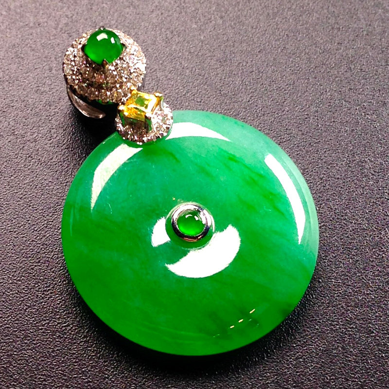 Natural Myanmar A-cargo jade pending full of green ice type of pin button jade hanging bracelet with certificate