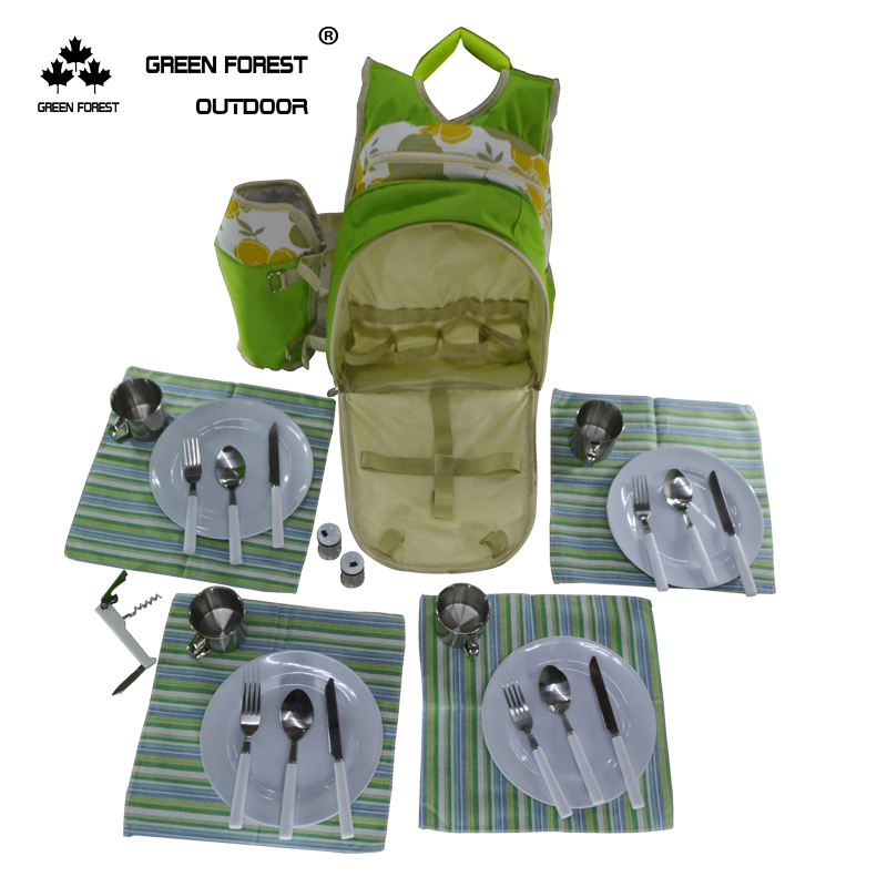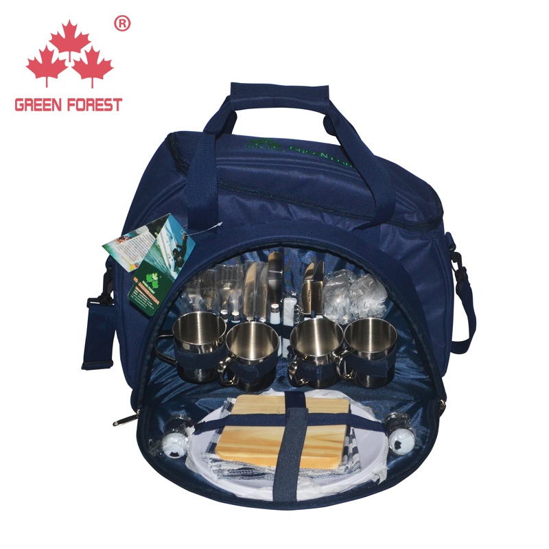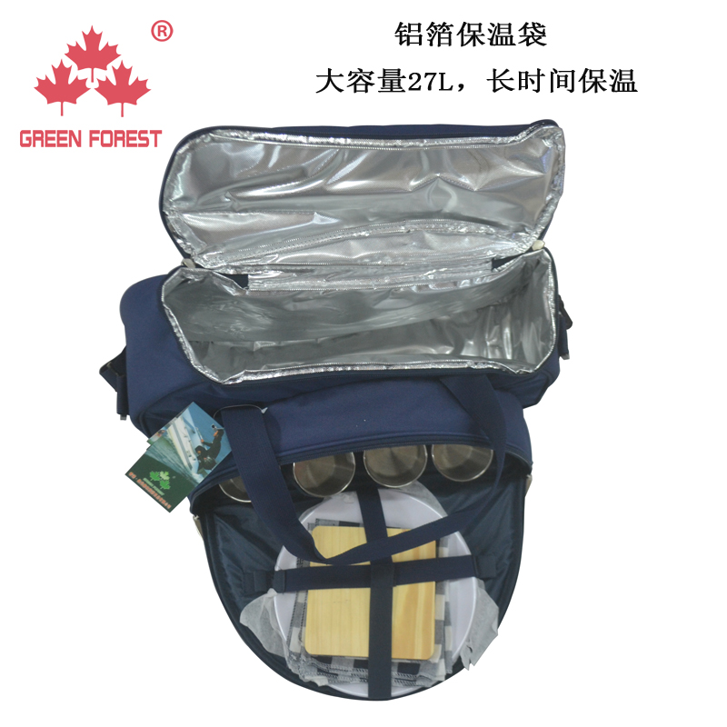 Green Light Forest Outdoor 4 People Steel Cups Picnic Bag Field Cutlery Bag Double Shoulder Meal Kits Single Shoulder Bag Insulation Pack Ice Pack
