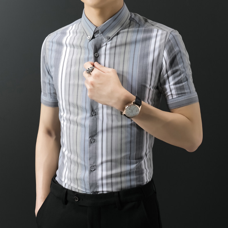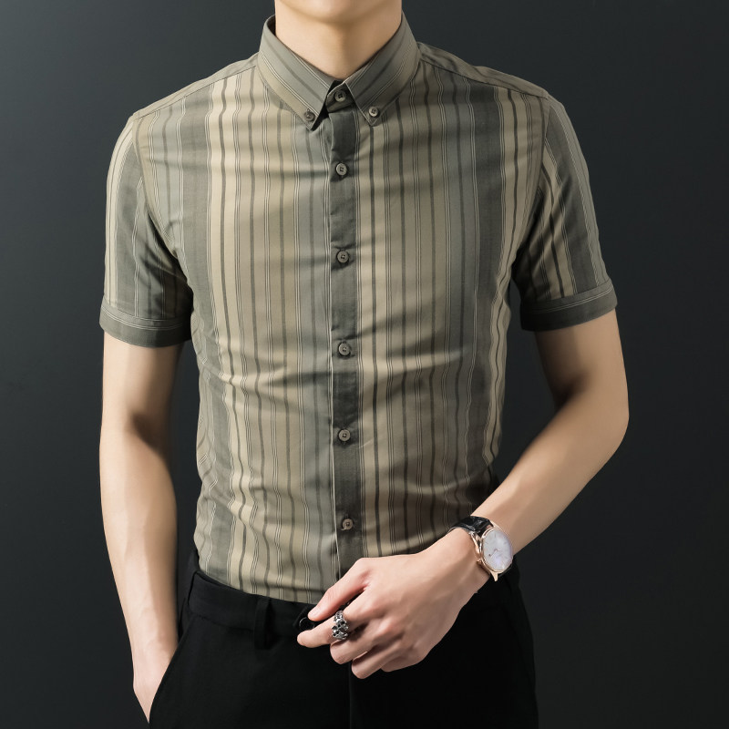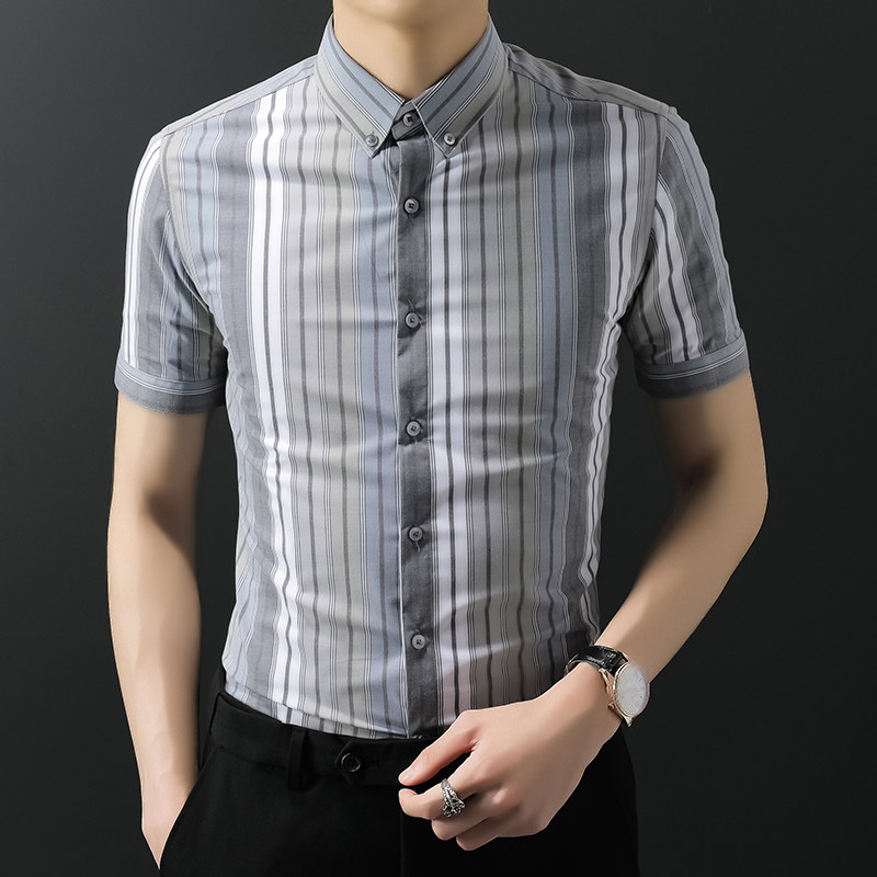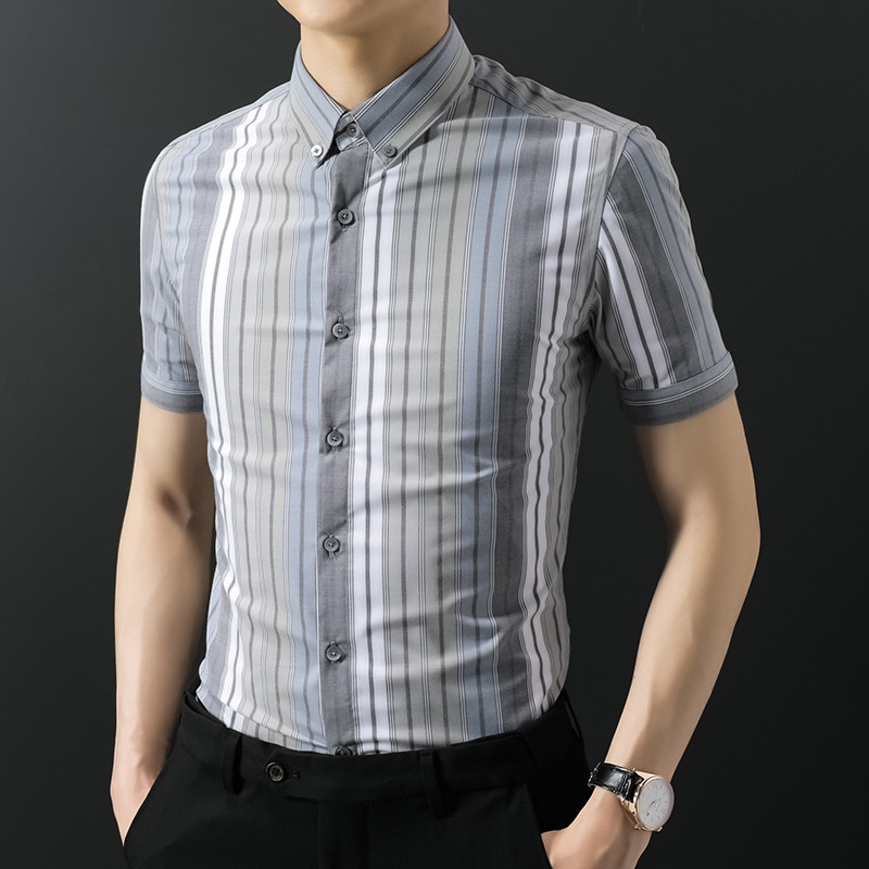 2020 Summer Strip Short - sleeved Shirt Men Take Leisure Short - sleeved Shirt Han Edition Business Thin Men Shirt