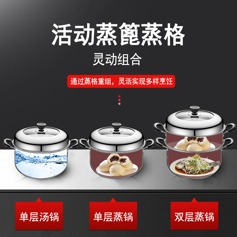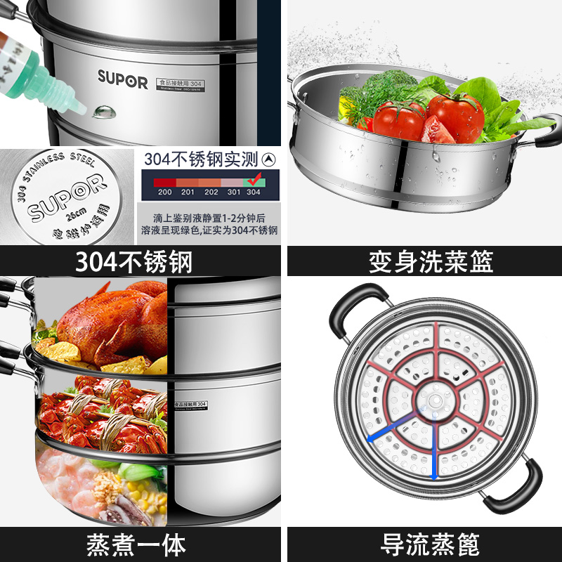 Supor steamer household 304 stainless steel large and small double and more three-layer thickened commercial steamer induction cooker gas stove